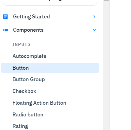 2. 왼쪽 메뉴바에서 Components > Button 클릭