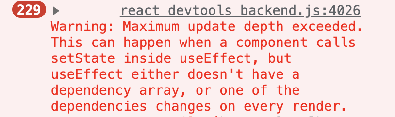서론 Warning: Maximum update depth exceeded. This can happen when a component calls setState inside useEffect, but useEffect either doesn’t have a dependency array, or one of the dependencies chang..