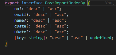 인터페이스를 정의할때 key: 타입을 지정해줘도 된다.