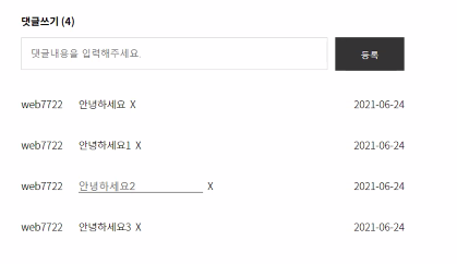 1. 댓글 쓰는부분 2. 댓글 BOX 부분 3. 댓글 BOX 안의 각각 댓글 list 4. 댓글 눌렀을 때 나오는 input 박스 부분 5. 모두를 아우르는 전체 contain 영역