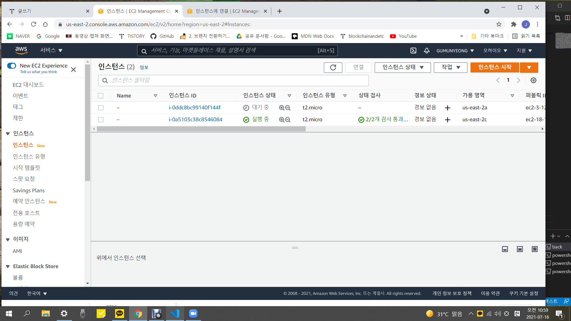 아 그 전에 아까 인스턴스 시작할때 받은 키페어를 내 vs 폴더에 넣어놔야 함.