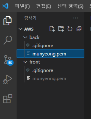 키페어는 확장명(.pem)으로 되어있고, 얘를 폴더에 넣을 때 웬만하면 gitignore도 미리 설정해놓는것이 좋음. 잘못해서 깃에 올렸다가 말도 안통하는 다른 사람들이 맘대로 이상하게 막 쓴다고 함.