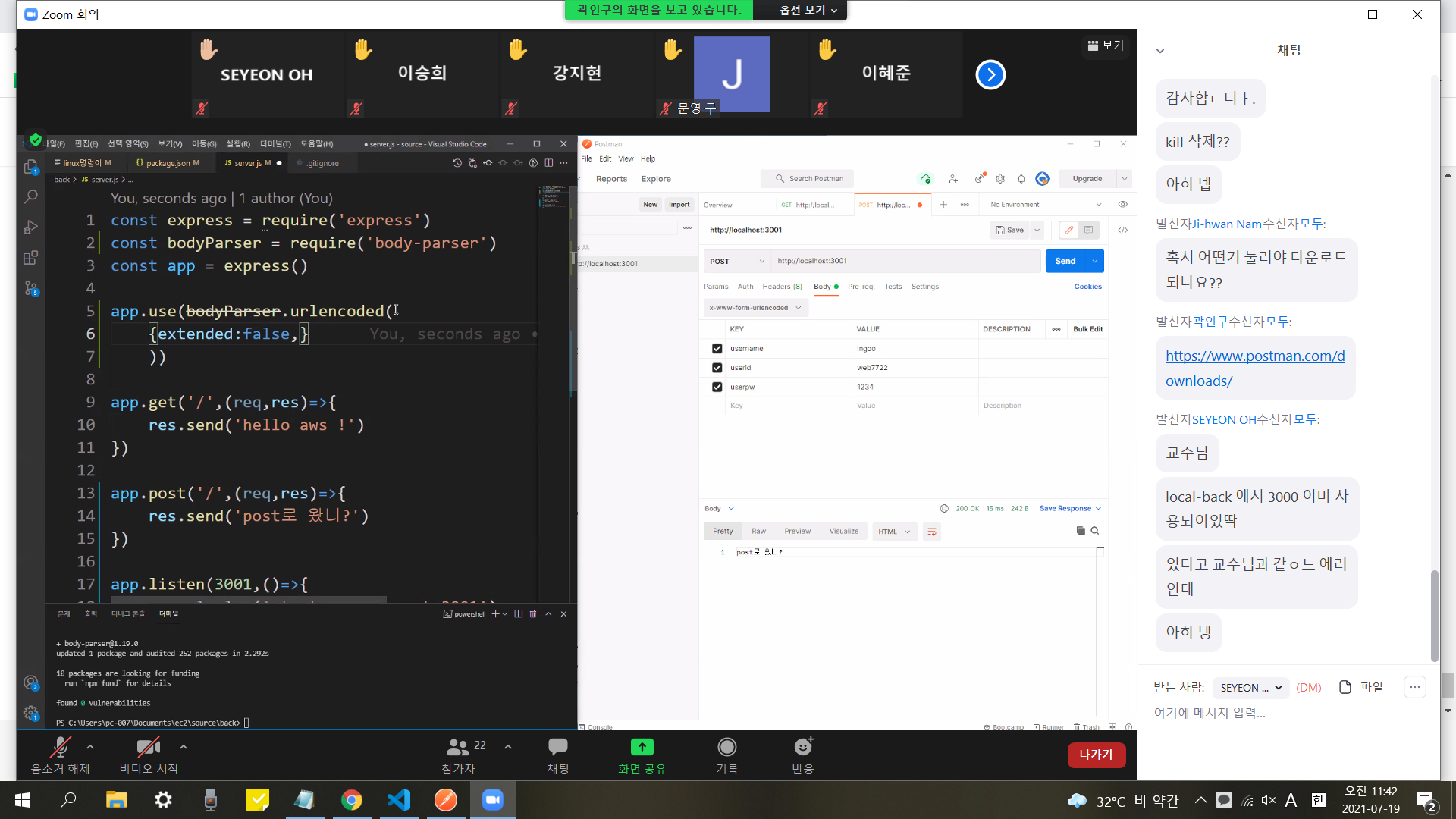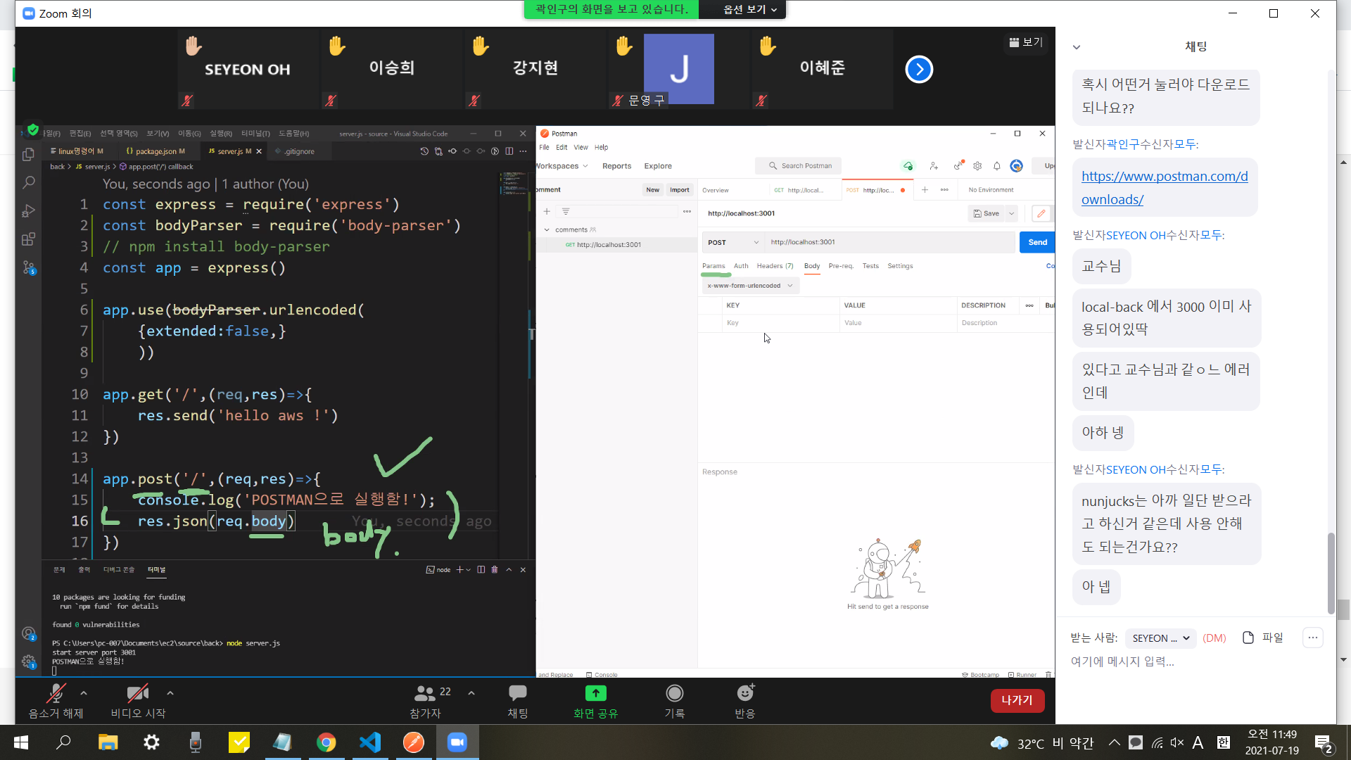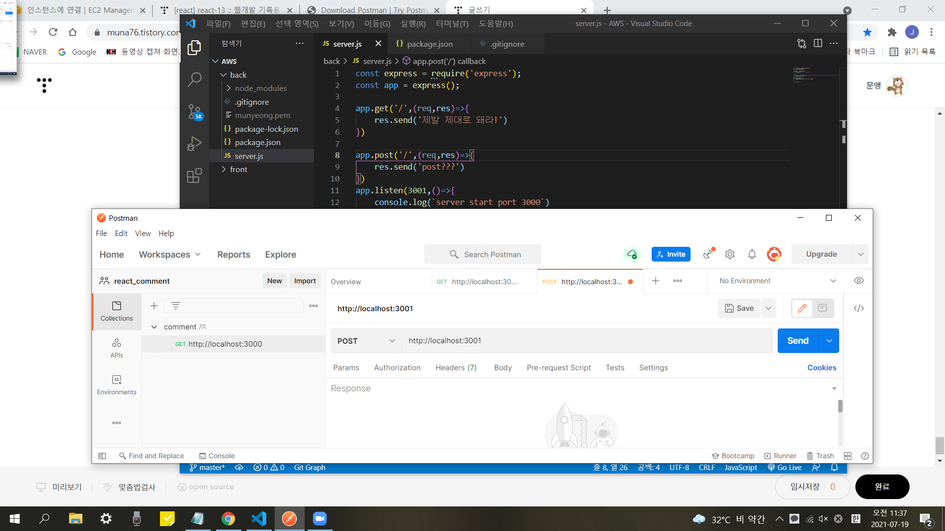 오늘은 이 문제 해결해서 서버를 제대로 돌릴거라고 함