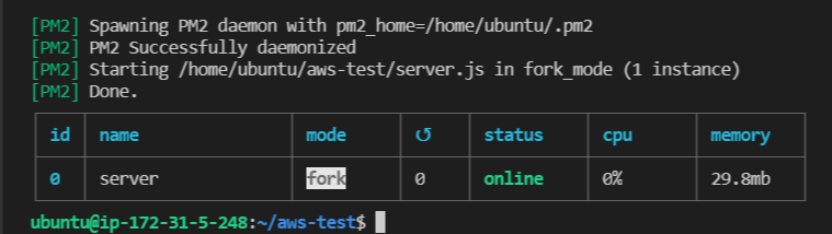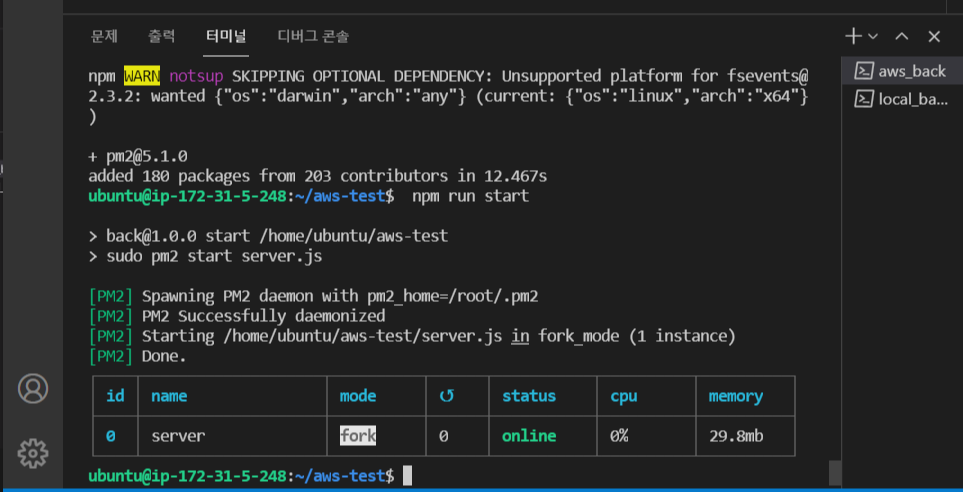 이 표를 다시 확인하고싶을때는 npx pm2 list